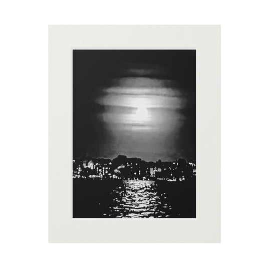 Tail-Whip Hunters Moon over Newport Harbor Fine Art Prints (Passepartout Paper Frame)