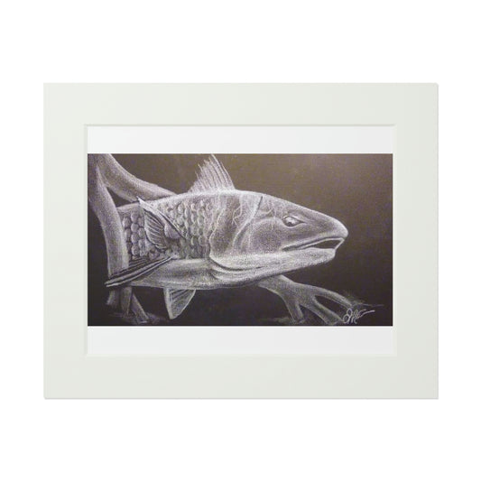 Tail Whip Redfish Fine Art Prints (Passepartout Paper Frame)